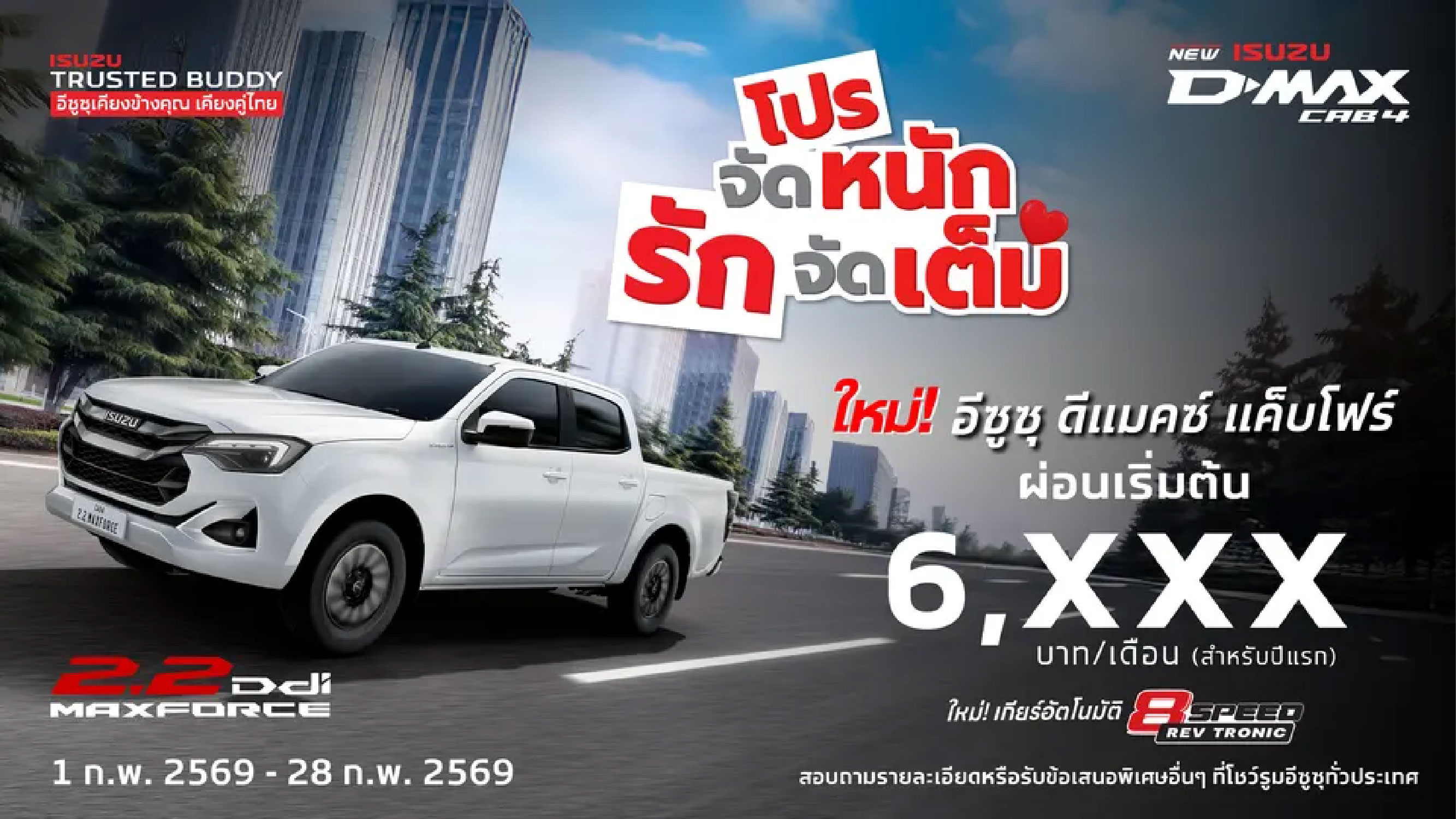 ใหม่! อีซูซุ ดีแมคซ์ แค็บโฟร์ ผ่อนเริ่มต้นเพียง 6,xxx บาท/เดือน (สำหรับปีแรก)