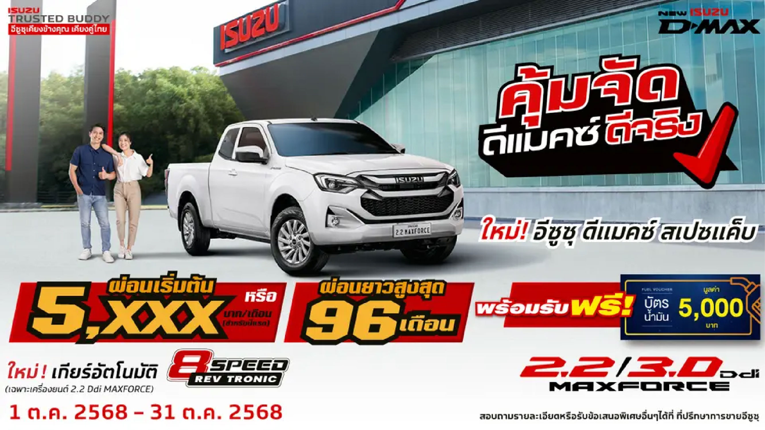 ใหม่! อีซูซุ ดีแมคซ์ สเปซแค็บ ผ่อนเริ่มต้นเพียง 5,xxx บาท/เดือน (สำหรับปีแรก) หรือ ผ่อนยาวสูงสุด 96 งวด